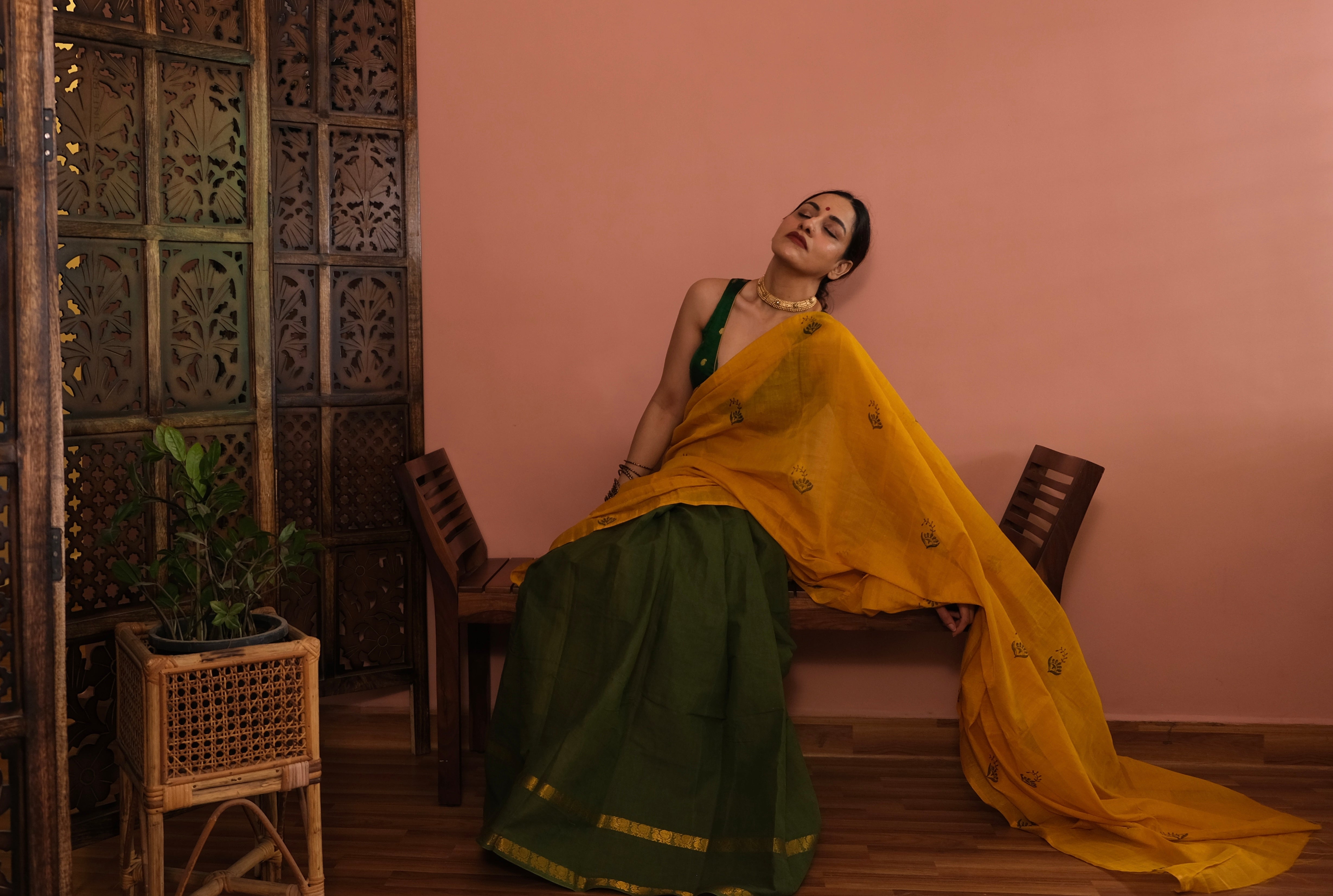 - Tissue Saree | Block Printed