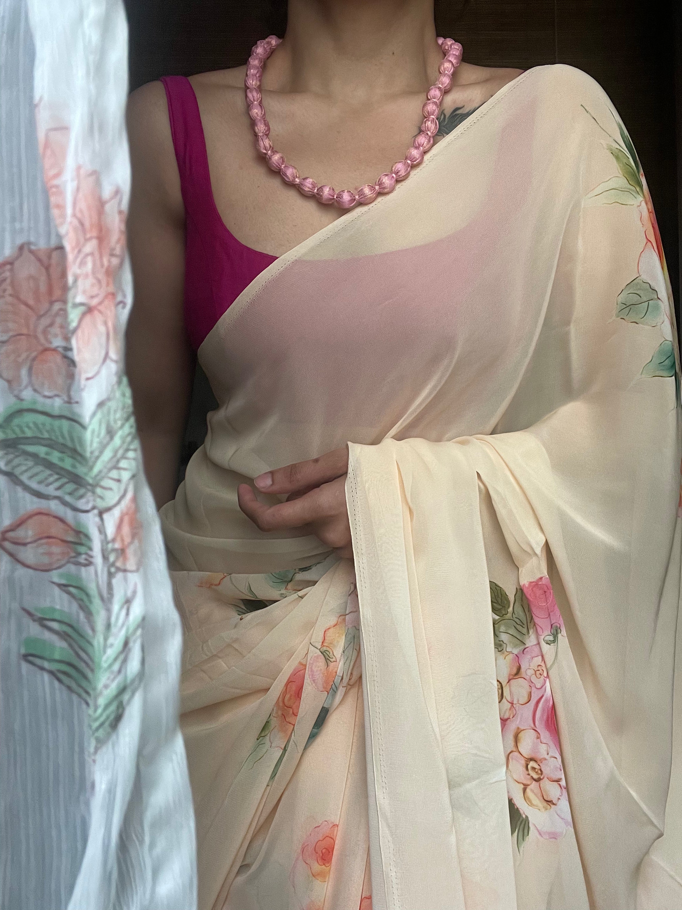 • Jewellery used for styling purposes only and is not for sale | Blouse materials will be curated by us for the sari.